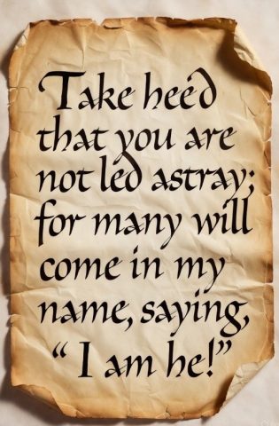 5 And as some spoke of the temple, how it was adorned with noble stones and offerings, he said, 6 “As for these things which you see, the days will come when there shall not be left here one stone upon another that will not be thrown down.” 7 And they asked him, “Teacher, when will this be, and what will be the sign when this is about to take place?” 8 And he said, “Take heed that you are not led astray; for many will come in my name, saying, `I am he!’ and, `The time is at hand!’ Do not go after them. 9 And when you hear of wars and tumults, do not be terrified; for this must first take place, but the end will not be at once.” 10 Then he said to them, “Nation will rise against nation, and kingdom against kingdom; 11 there will be great earthquakes, and in various places famines and pestilences; and there will be terrors and great signs from heaven.