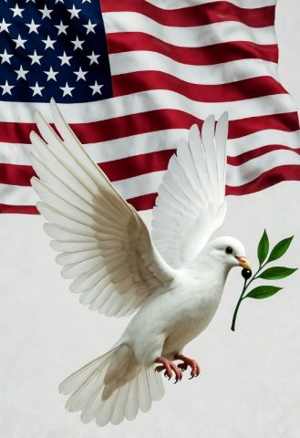Peace. American Flag with a Dove carrying an Olive Branch. Image by Grok