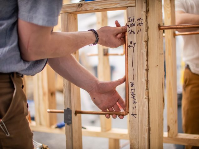 A student at the College of St. Joseph the Worker works on a plumbing project (Image courtesy of the College of St. Joseph the Worker)