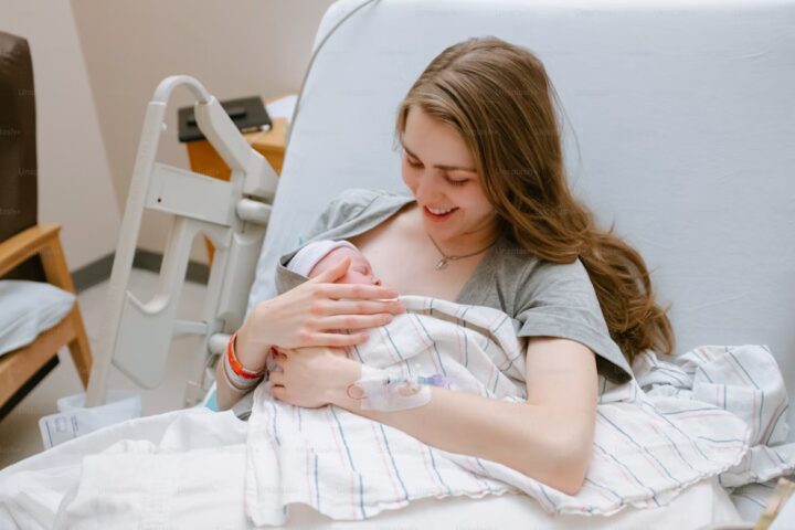 Wesley Tingey. Unsplash. Mom holing newborn baby.
