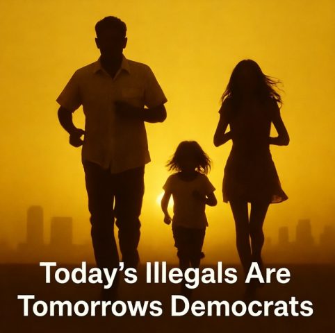 Image by Grok. AI. Sign: Today's Illegals are tomorrows Democrats