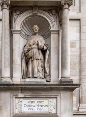 A statue of St. John Henry Newman outside of Brompton Oratory in London
