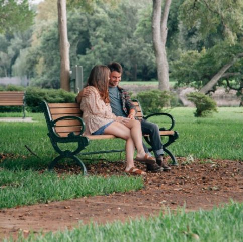 Ryan Jacobson. Unsplash. Man/Woman sitting on park bench.