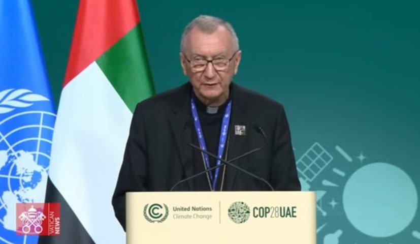 Screenshot . 2023.02.12 Cardinal Secretary of State Pietro Parolin delivers Pope Francis’ speech at the COP28. Youtube, Vatican News https://www.youtube.com/watch?v=xF4AgpYjhws