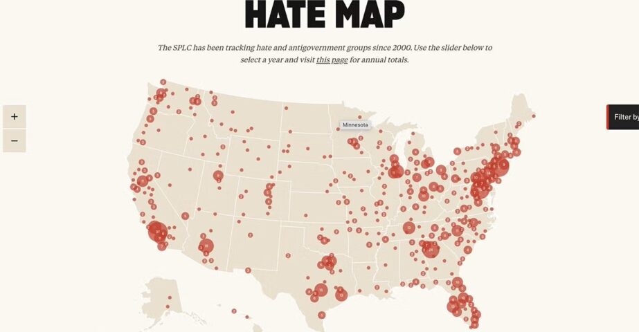 The Southern Poverty Law Center's "hate map" for 2024 (SPLC website screenshot)